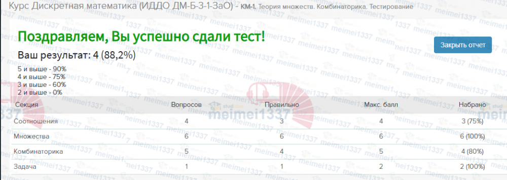 Услуга: Помощь со сдачей - КМ-1. Теория множеств. Комбинаторика. Тестирование