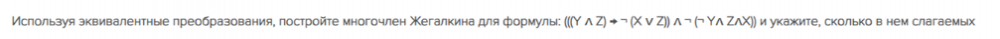 Используя эквивалентные преобразования, постройте многочлен Жегалкина для формулы: (((Y AZ) + - (X vZ) л - (- YA ZAX)) и укажите, сколько в нем слагаемых