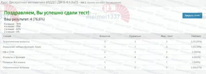 Для студентов ИДДО НИУ «МЭИ» по предмету Дискретная математикаКурс Дискретная математика - КМ-2. Булева алгебра. ТестированиеКурс Дискретная математика - КМ-2. Булева алгебра. Тестирование