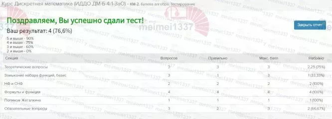 Для студентов ИДДО НИУ «МЭИ» по предмету Дискретная математикаПомощь со сдачей - КМ-2. Булева алгебра. ТестированиеПомощь со сдачей - КМ-2. Булева алгебра. Тестирование