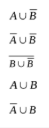 Пусть универсальное множество U=(0,1,2,3,4,5,6,7,8,9) и даны множества А={1,2,3]), В={3,4,5).