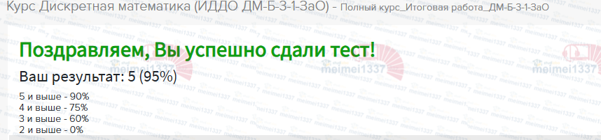 Ответы к экзамену Экзамен: Полный курс_Итоговая работа_ДМ-Б-4-1-ЗаО Итоговая работа - 95%