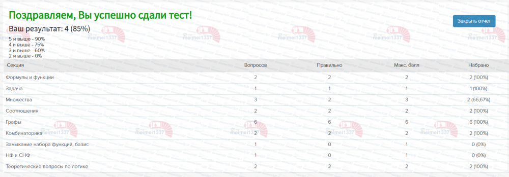 Ответы к экзамену Экзамен: Курс Дискретная математика - Полный/Аттестационный курс Итоговая работа