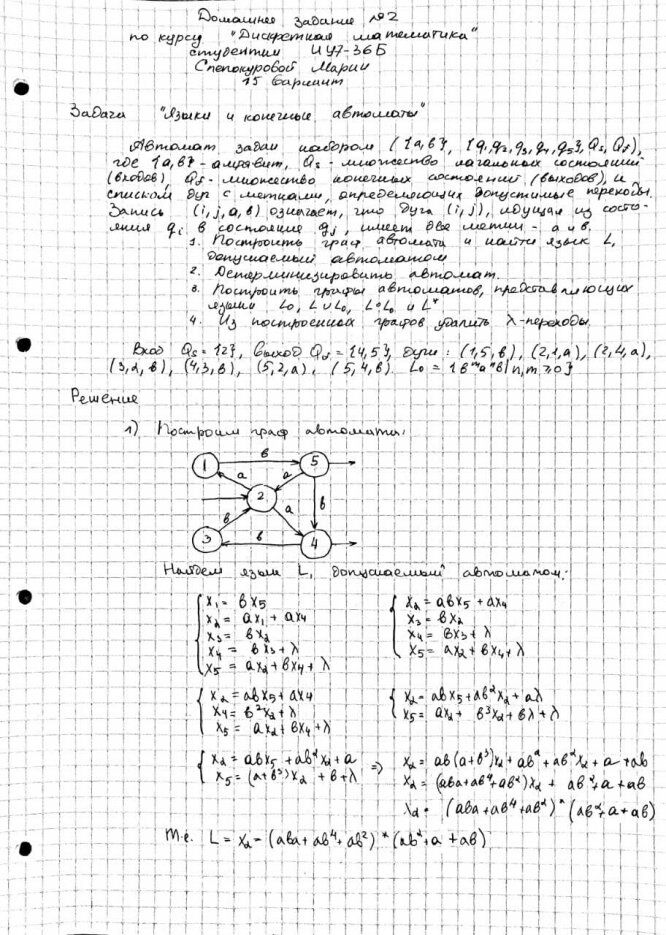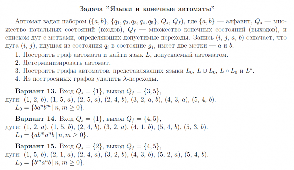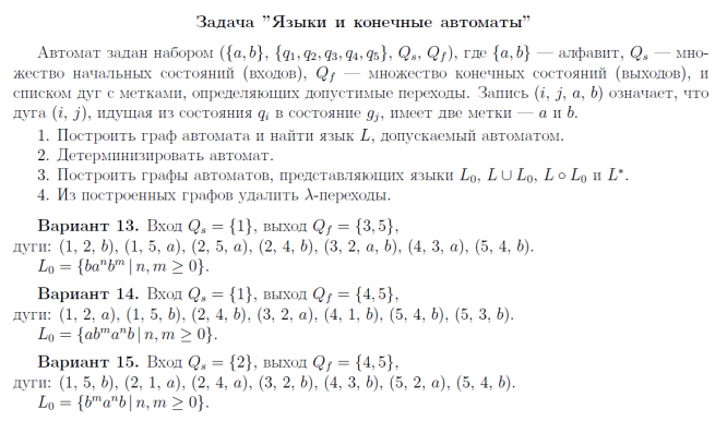 ДЗ: Типовое домашнее задание по дискретной математике по теме "Языки и конечные автоматы" за 3 семестр 15 вариант