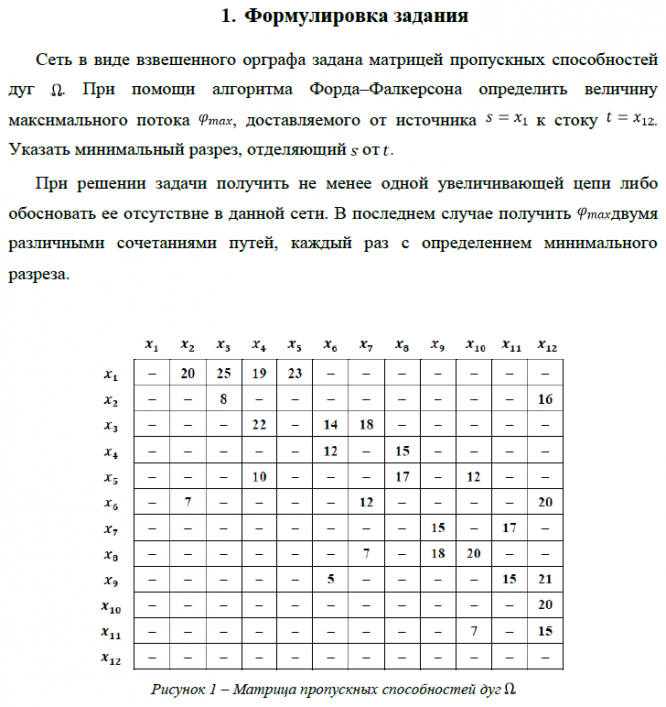 Для студентов МГТУ им. Н.Э.Баумана по предмету Дискретная математикаДомашнее задание "Поток в сети. Алгоритм Форда-Фалкерсона" (вариант №12)Домашнее задание "Поток в сети. Алгоритм Форда-Фалкерсона" (вариант №12)