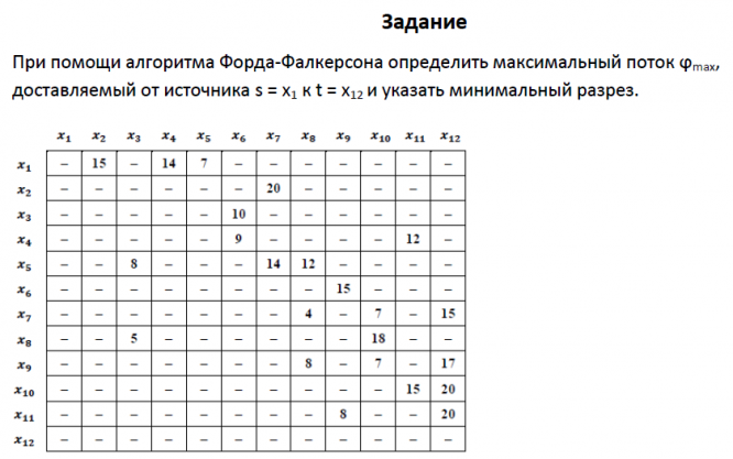 Для студентов МГТУ им. Н.Э.Баумана по предмету Дискретная математикаДомашнее задание "Поток в сети. Алгоритм Форда-Фалкерсона" (вариант №16)Домашнее задание "Поток в сети. Алгоритм Форда-Фалкерсона" (вариант №16)