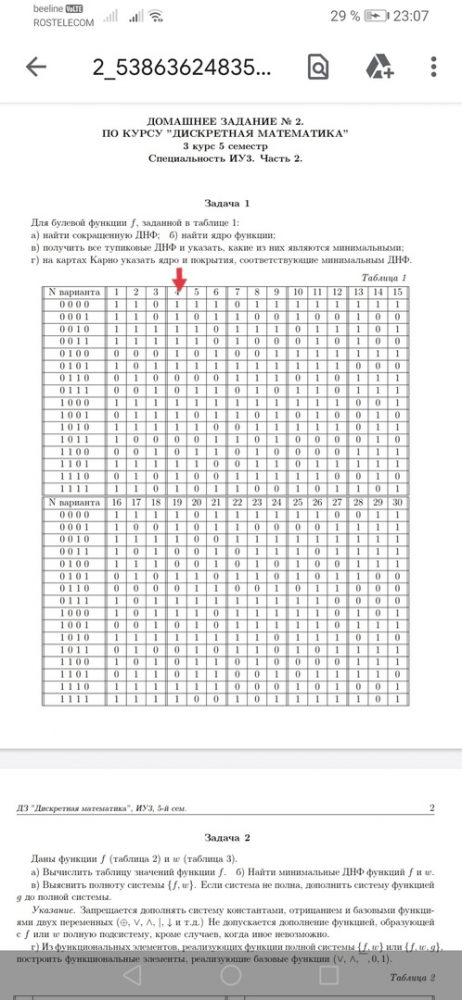 Для студентов МГТУ им. Н.Э.Баумана по предмету Дискретная математикаВариант 4 - ДЗ №1 - Булевы функцииВариант 4 - ДЗ №1 - Булевы функции