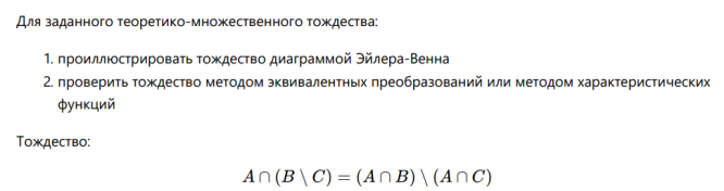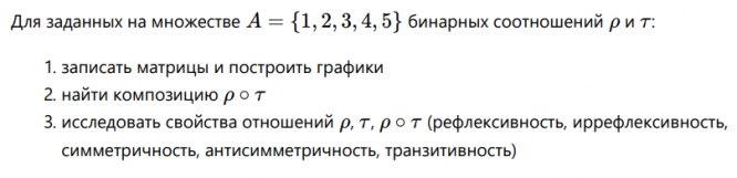 Для заданного теоретико-множественного тождества Для заданных на множестве А = 1 2 3 4 5 бинарных соотношений.
