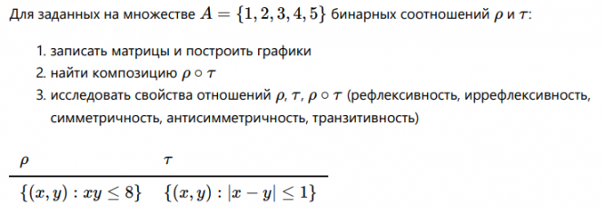 ДЗ 1, 2: Множества, бинарные отношения вариант 4