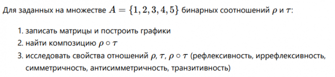 ДЗ 1, 2: Множества, бинарные отношения вариант 18