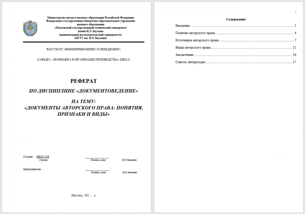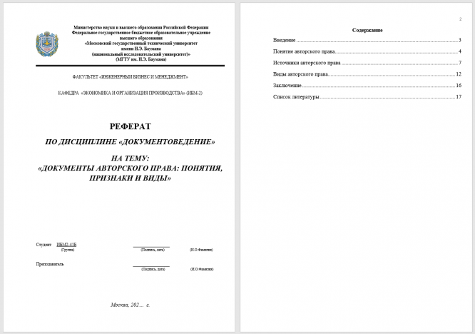 Для студентов МГТУ им. Н.Э.Баумана по предмету ДокументоведениеНа тему: Документы авторского права: понятия, признаки и видыНа тему: Документы авторского права: понятия, признаки и виды