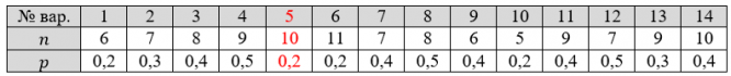 2. Построить график функции вероятностей для случайной величины , имеющей биномиальное распределение при заданных n и p.