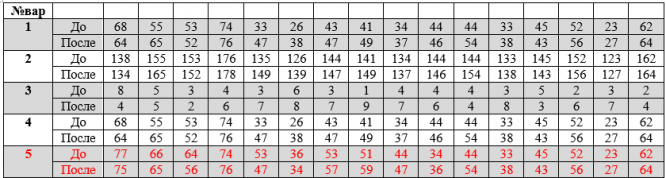4. (T-критерий) Даны две выборки для некоторого признака. Необходимо выяснить, значимо ли различие между интенсивностью сдвигов (α=0,01).