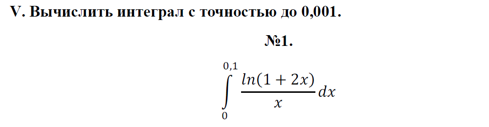 Задача 5: Вычислить интеграл с точностью до 0,001 вариант 1
