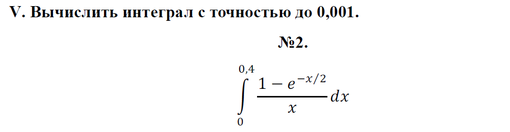 Задача 5: Вычислить интеграл с точностью до 0,001 вариант 2