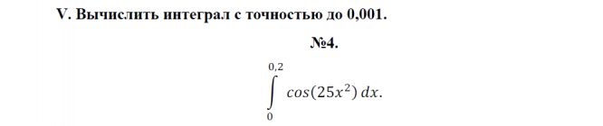 Задача 5: Вычислить интеграл с точностью до 0,001 вариант 4