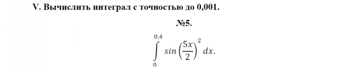 Задача 5: Вычислить интеграл с точностью до 0,001 вариант 5