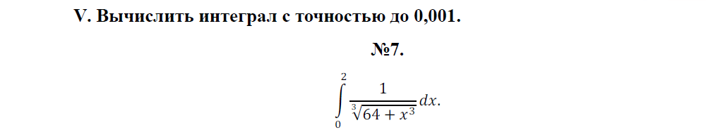 Задача 5: Вычислить интеграл с точностью до 0,001 вариант 7