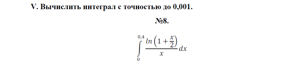 Задача 5: Вычислить интеграл с точностью до 0,001 вариант 8