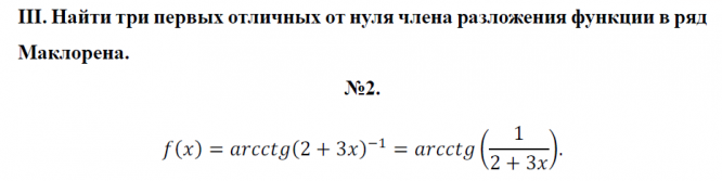 Задача 3: Найти три первых отличных от нуля члена разложения функции в ряд Маклорена вариант 2