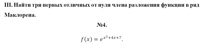 Задача 3: Найти три первых отличных от нуля члена разложения функции в ряд Маклорена вариант 4