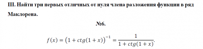 Задача 3: Найти три первых отличных от нуля члена разложения функции в ряд Маклорена вариант 6