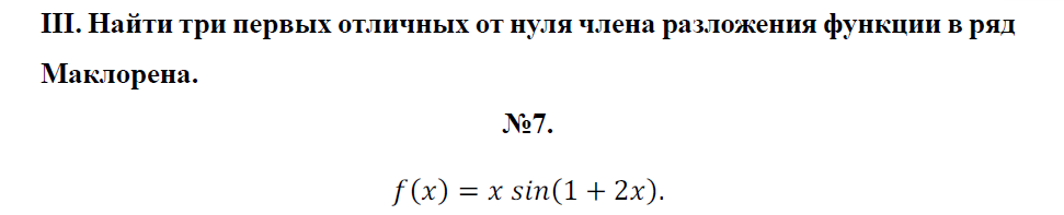 Задача 3: Найти три первых отличных от нуля члена разложения функции в ряд Маклорена вариант 7