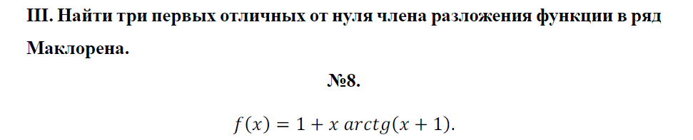 Задача 3: Найти три первых отличных от нуля члена разложения функции в ряд Маклорена вариант 8