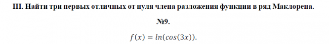 Задача 3: Найти три первых отличных от нуля члена разложения функции в ряд Маклорена вариант 9