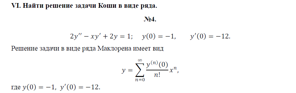 Задача 6: Найти решение задачи Коши в виде ряда вариант 4
