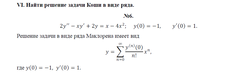 Для студентов НИУ ИТМО по предмету Дополнительные главы высшей математикиНайти решение задачи Коши в виде рядаНайти решение задачи Коши в виде ряда