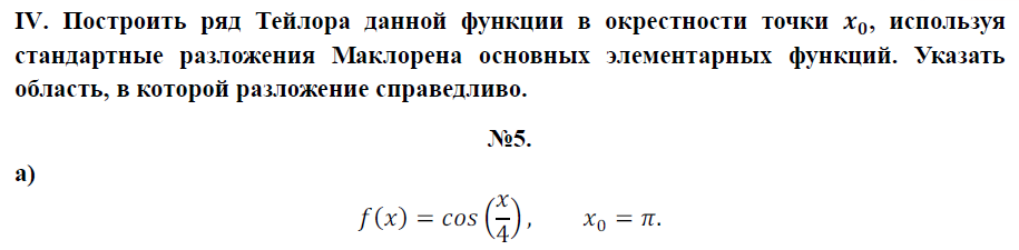 Для студентов НИУ ИТМО по предмету Дополнительные главы высшей математикиПостроить ряд Тейлора данной функции в окрестности точки, используя стандартные разложения Маклорена основных элементарных функцийПостроить ряд Тейлора данной функции в окрестности точки, используя стандартные разложения Маклорена основных элементарных функций