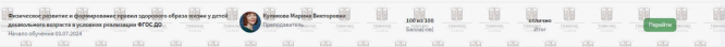 Конкретное содержание образовательной области «Физическое развитие» зависит от возрастных особенностей детей. Соотнесите возрастную категорию с видами деятельности, в которых реализуется двигательная активность. •младенческий возраст •ранний возраст •дошкольный возраст Для проявления инициативы в двигательной деятельности детей в ДОО должны быть созданы следующие условия (выберите несколько правильных ответов) наличие яркого и красочного спортивного оборудования •подбор спортивного инвентаря с учетом индивидуальных особенностей детей наличие в группах нестандартного оборудования •наличие бассейна К нетрадиционному спортивному оборудованию относятся мячи шишки флажки обручи Какие ранее существующие в ФГТ образовательные области положены в основу образовательной области «Физическое развитие»? (выберите несколько правильных ответов) •физическая культура •здоровье •физическое воспитание •физическое образование Вопрос 5 Какие специфические задачи составляют содержание образовательной области «Физическое развитие»? (выберите несколько правильных ответов) •развитие физических качеств •накопление и обогащение двигательного опыта •формирование потребности в двигательной активности •приобщение к спортивной деятельности Вопрос 6 Мониторинг физического развития детей в образовательном процессе педагог проводит •для выстраивания индивидуальной траектории образования ребенка •для заполнения отчетной документации •для сравнения показателей ребенка с нормативными требованиями •для соотнесения детей с одной из медицинских групп Вопрос 7 Образовательная область «Физическое развитие» предполагает приобретение ребенком опыта в следующих видах деятельности •трудовой •двигательной •музыкальной •спортивной Вопрос 8 Требования к результатам освоения программы, предложенные в ФГОС ДО в образовательной области «Физическое развитие» – это •целевые ориентиры •целевые показатели •примерные нормативы •индивидуальные показатели Вопрос 9 Что относится к целевым ориентирам в образовательной области «Физическое развитие» в младенческом и раннем возрасте? (выберите несколько правильных ответов) •ребенок стремится осваивать различные виды движений •ребенок с интересом участвует в подвижных играх с простым содержанием •ребенок владеет основными движениями, может их контролировать •ребенок воспринимает здоровый образ жизни как ценность Вопрос 10 Что относится к целевым ориентирам в образовательной области «Физическое развитие» в дошкольном возрасте? (выберите несколько правильных ответов) •ребенок стремится осваивать различные виды движений •ребенок с интересом участвует в подвижных играх с простым содержанием •ребенок владеет основными движениями, может их контролировать •ребенок воспринимает здоровый образ жизни как ценность .