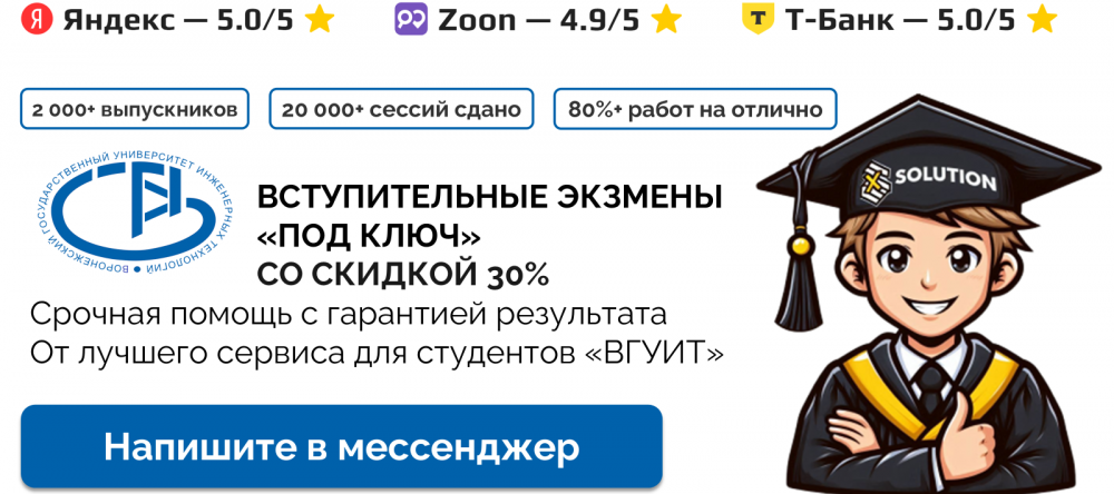 Срочная помощь со вступительными экзаменами в ВГУИТ с гарантией результата по лучшим ценам от экспертов X-SolutionПреимущества услуги