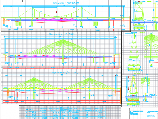 Проект вантового моста. Варианты вантовых и висячих мостов, Выбор оптимального варианта. Расчет характерных узлов конструкций.