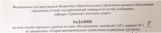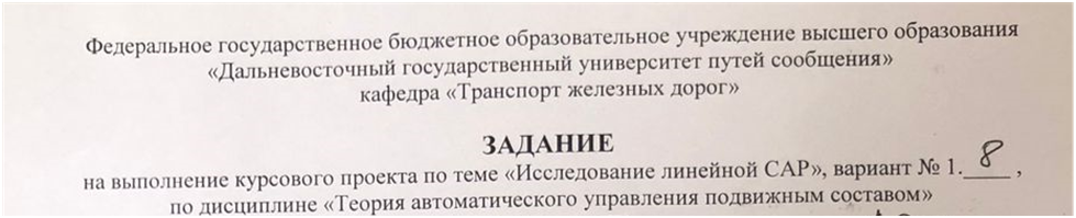 ИССЛЕДОВАНИЕ ЛИНЕЙНОЙ СИСТЕМЫ АВТОМАТИЧЕСКОГО РЕГУЛИРОВАНИЯ.docx