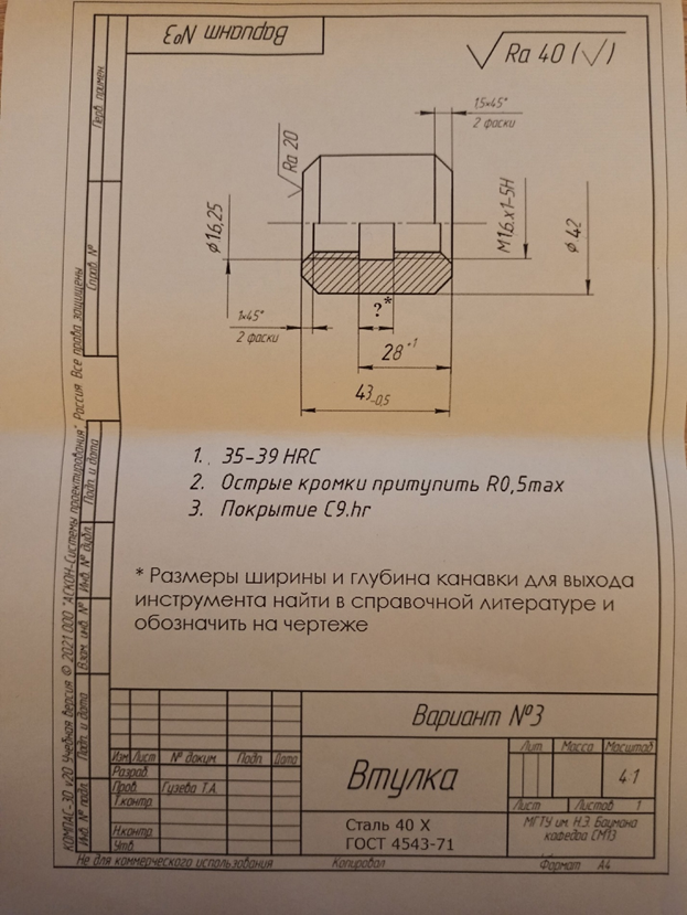 Для студентов МГТУ им. Н.Э.Баумана по предмету ДругиеРКПТ.Разработка маршрутного технологического процесса (МТП) изготовления деталей. Вариант 3.РКПТ.Разработка маршрутного технологического процесса (МТП) изготовления деталей. Вариант 3.