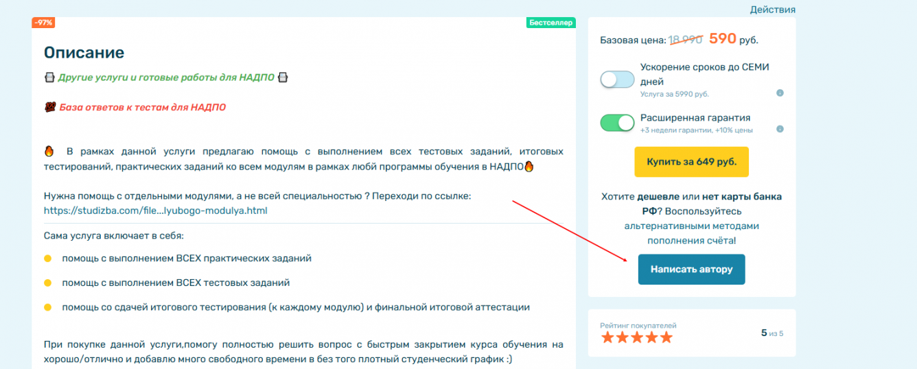 📚Помощь в сдаче любых видов работ✒️Более 6000 готовых студенческих работ и тестов для НСПК, ОСЭК, НИИДПО, НАДПО и других ВУЗов👨🏫Гарантирую результат или полностью верну деньги!✅💰
