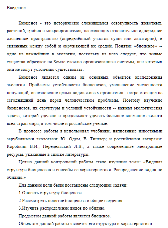 Реферат: Видовая структура биоценозов и способы ее характеристики. Распределение видов по обилию. вариант 26
