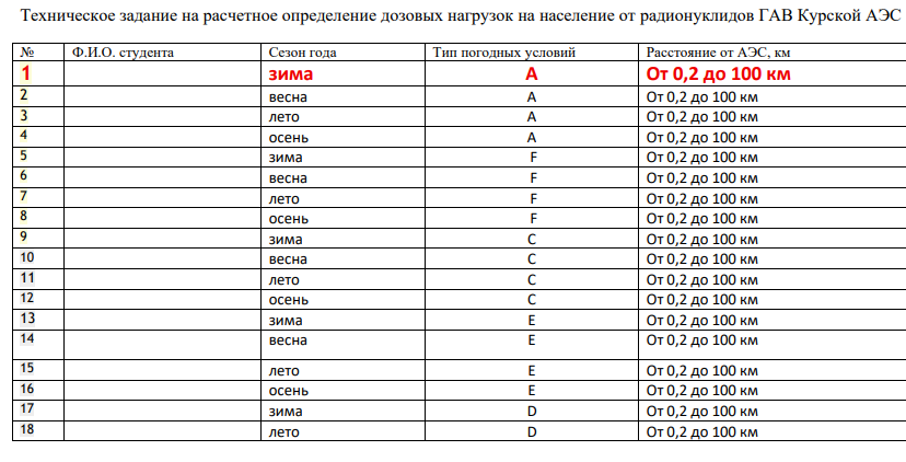 Курсовая работа 1: Определение дозовых нагрузок на население за счет радионуклидов газоаэрозольных выбросов Курской АЭС вариант 1