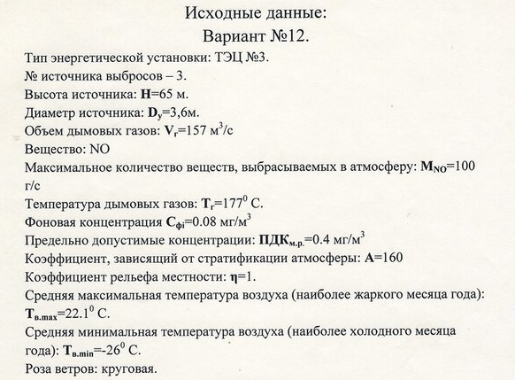 ДЗ: Расчет рассеивания в атмосферном воздухе выбросов загрязняющих веществ от энергетических установок вариант 12