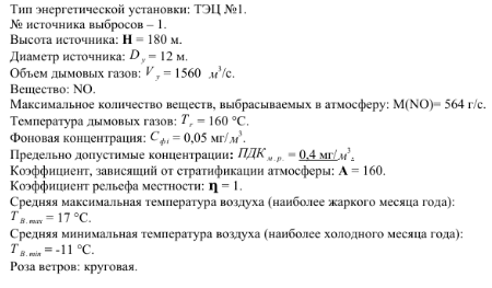 ДЗ: Расчет рассеивания в атмосферном воздухе выбросов загрязняющих веществ от энергетических установок вариант 4