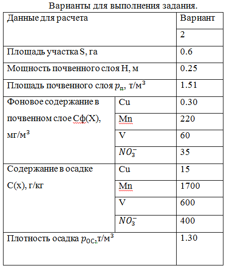 Лабораторная работа: Практическое задание № 3 «Нормирование загрязняющих веществ в почве» вариант 2