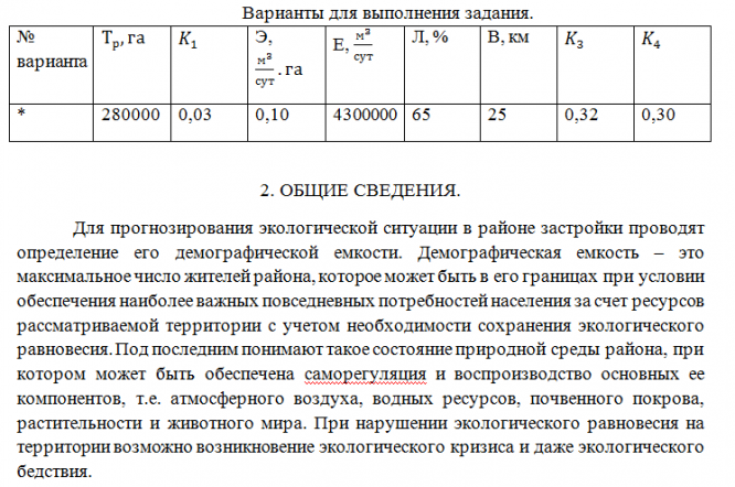 Лабораторная работа: Практическое задание № 4 «Оценка воздействия на окружающую среду. Определение демографической емкости района застройки»
