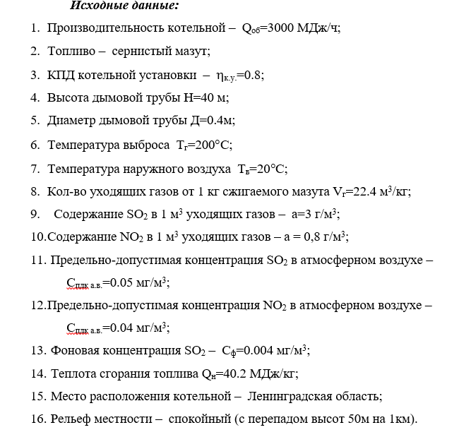 Для студентов СПбПУ Петра Великого по предмету ЭкологияРасчет рассеивания дымовых газов из трубы котельнойРасчет рассеивания дымовых газов из трубы котельной