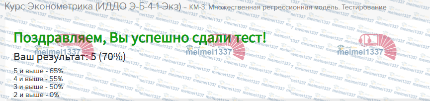 Для студентов ИДДО НИУ «МЭИ» по предмету ЭконометрикаКурс Эконометрика - КМ-3. Множественная регрессионная модель. ТестированиеКурс Эконометрика - КМ-3. Множественная регрессионная модель. Тестирование