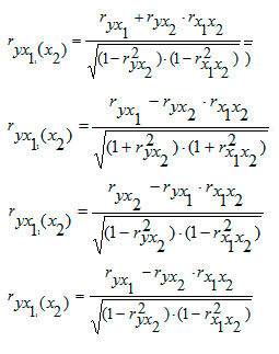 Выборочный частный коэффициент корреляции ryx1(x2) определяется по формуле: