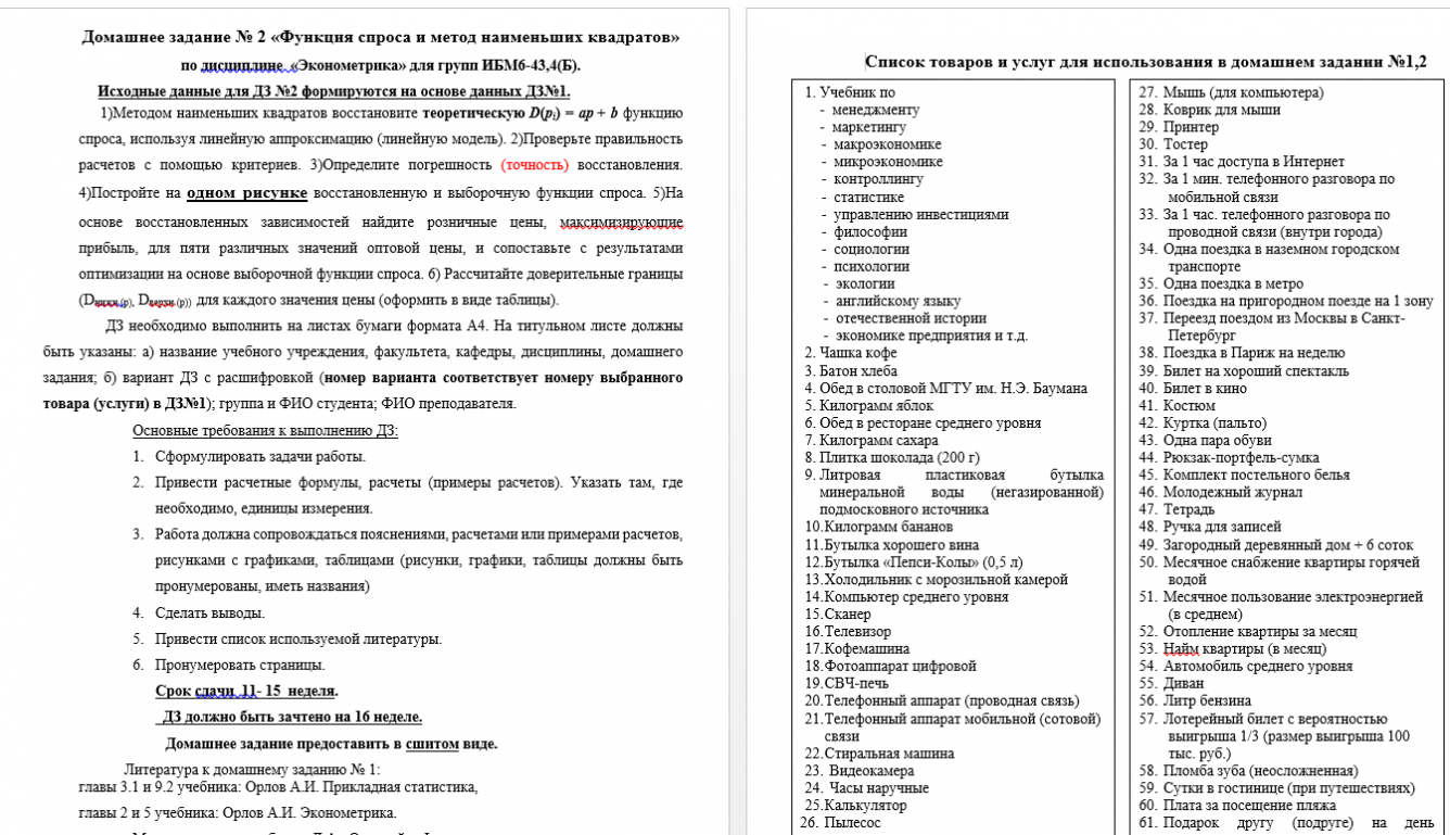 Для студентов МГТУ им. Н.Э.Баумана по предмету ЭконометрикаДомашнее задание №2 на тему: Функция спроса и метод наименьших квадратовДомашнее задание №2 на тему: Функция спроса и метод наименьших квадратов