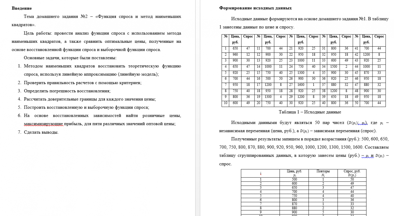 ДЗ 2: Домашнее задание №2 на тему: Функция спроса и метод наименьших квадратов вариант 1