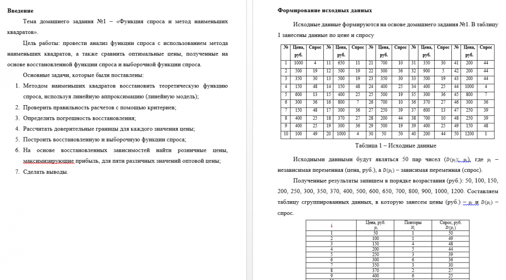 Для студентов МГТУ им. Н.Э.Баумана по предмету ЭконометрикаДомашнее задание №2 на тему: Функция спроса и метод наименьших квадратовДомашнее задание №2 на тему: Функция спроса и метод наименьших квадратов